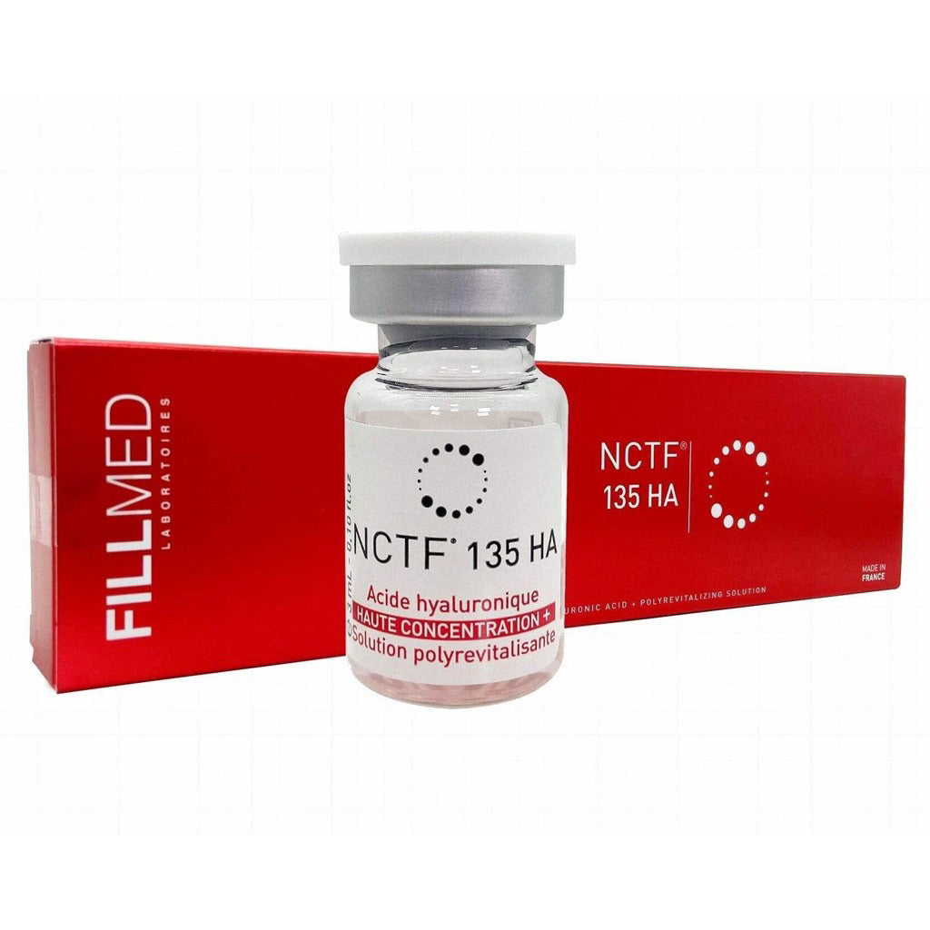 NCTF 135 HA is an advanced skin revitalization solution formulated to deeply nourish, hydrate, and rejuvenate the skin. This injectable mesotherapy product contains 5 mg/ml of non-crosslinked hyaluronic acid combined with a powerful complex of 59 active ingredients, including vitamins, amino acids, minerals, coenzymes, antioxidants, and nucleic acids—carefully selected to support optimal cellular function and skin regeneration.