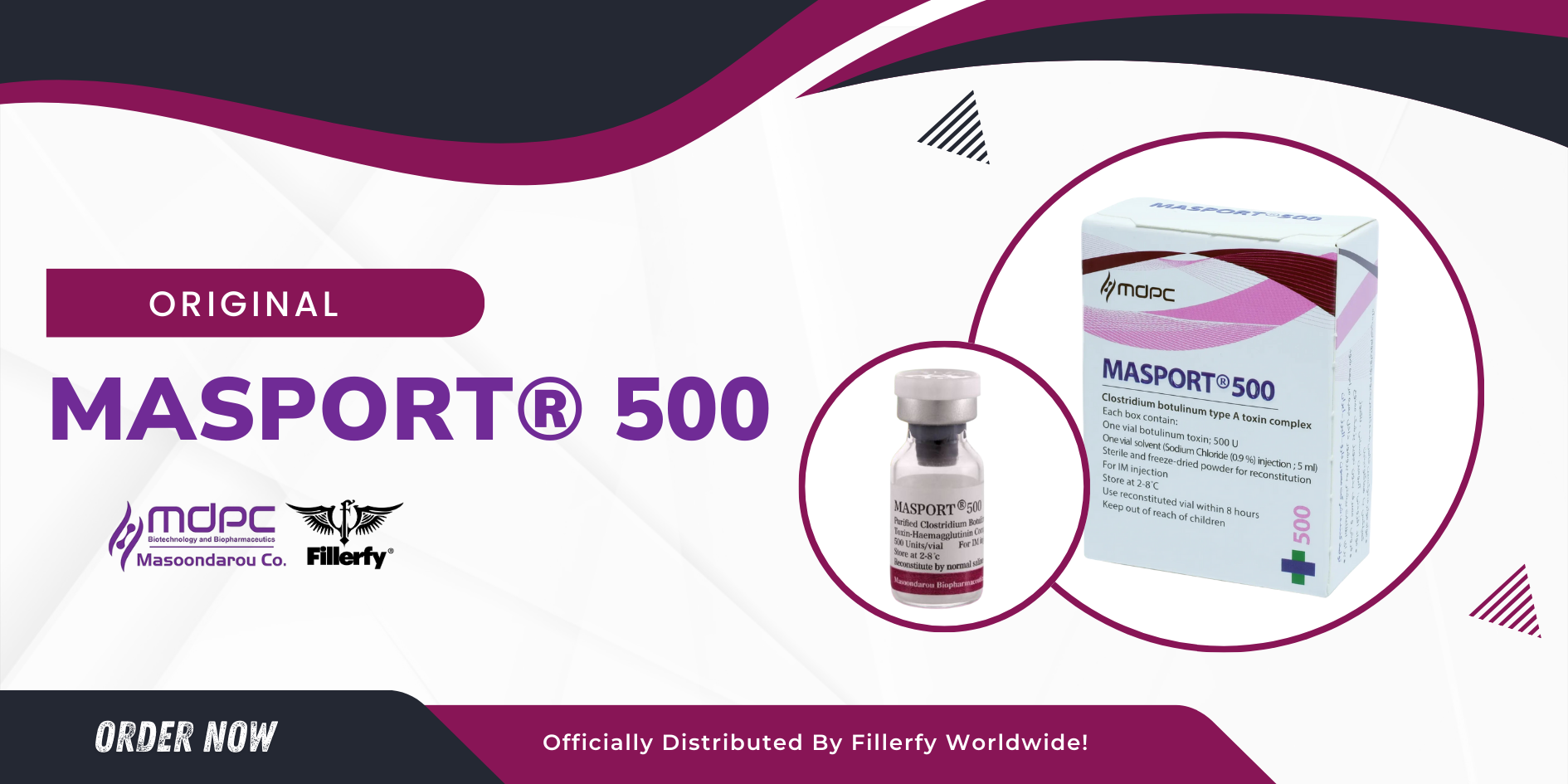 MASPORT®500 by Fillerfy®is a premium injectable formulation containing 500 Units of highly purifiedClostridium Botulinum Type A toxin (BTNA). Packaged in a sterile, lyophilized vial along with a dedicated solvent, MASPORT®500 is manufactured using cutting-edge technology in full compliance withcurrent Good Manufacturing Practices (cGMP), ensuring the highest standards of safety, quality, and consistency.
